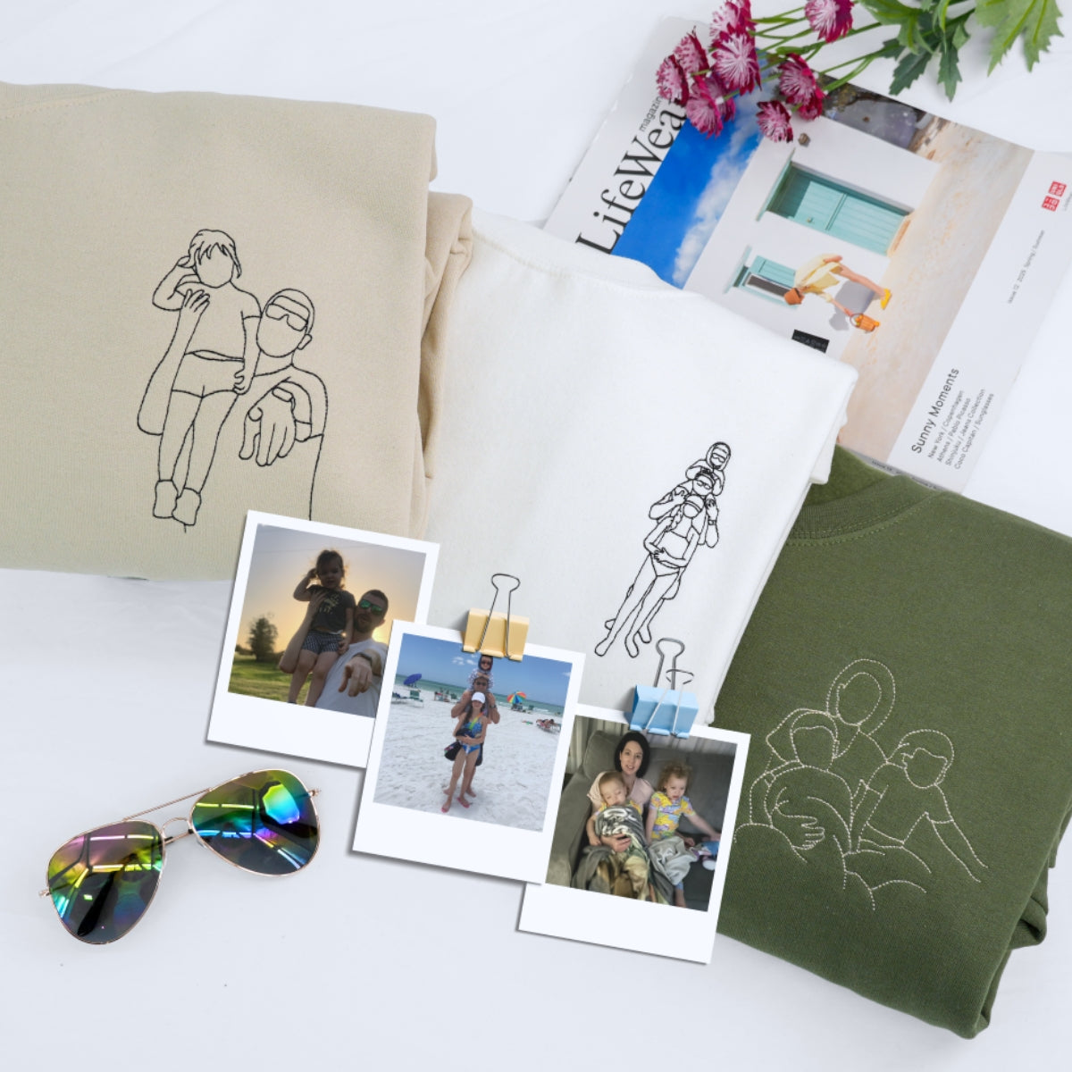 Dad line art custom hoodies featuring artistic minimalist embroidery created from your family photos. Beautiful father-child bonding moments transformed into elegant line drawing embroidery. Perfect Father's Day gift celebrating the special dad-child relationship with sophisticated artistic style and personalized family memories captured in premium embroidered artwork.