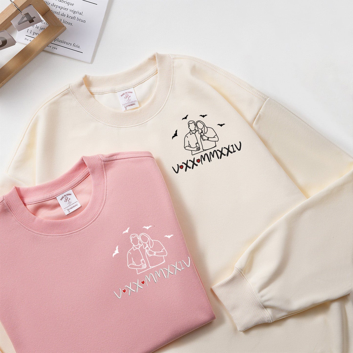 Halloween Special Custom: Embroidered Couple Photo Hoodie with Roman Numeral Date Commemorative Gift